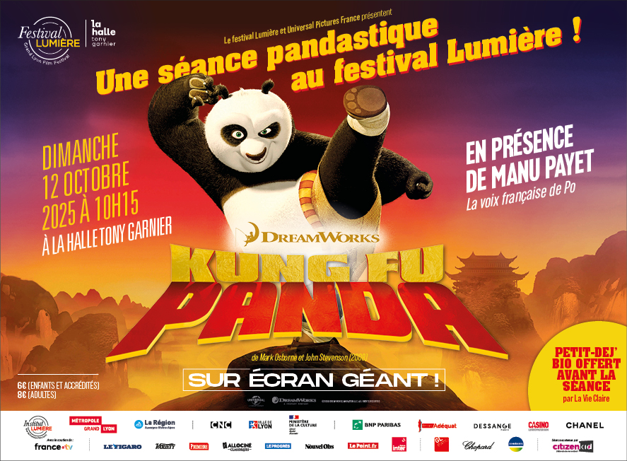 On attend aussi la séance « pandastique » le dimanche 12 octobre à 10h15 à la Halle Tony Garnier. Le célèbre Kung Fu Panda sur écran géant pour une séance familiale présentée par Manu Payet, la voix française de Po. Voilà de quoi égayer un réveil dominical ! Et ce, avec un petit déjeuner bio offert par une grande enseigne du secteur, est-il annoncé. Les bons réflexes sont toujours les bienvenus !