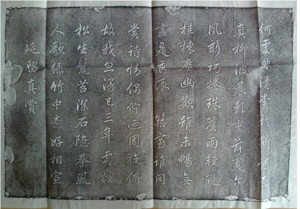 « Les pierres conservent la mémoire de l’écriture chinoise. Les textes gravés pouvaient être reproduits, avant même l’invention du livre mais aussi après afin d’offrir des modèles de calligraphie. On réalisait ainsi un estampage de la stèle gravée. Tout lettré chinois possédait chez lui quelques estampages soigneusement montés en albums pour ses exercices personnels de calligraphie et ses loisirs d’amateur d’art et de collectionneur. »